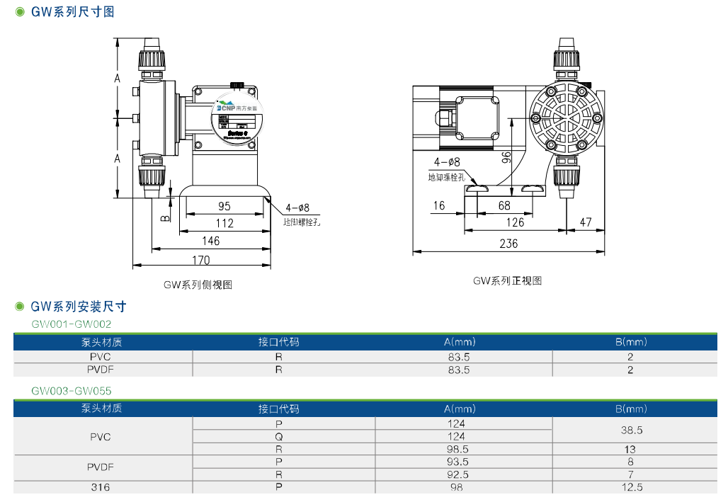GW系列機械隔膜計量泵,采用減速電機傳動偏心輪推動隔膜往復運動。進出口單向閥采用雙閥球密封,確保計量精度。